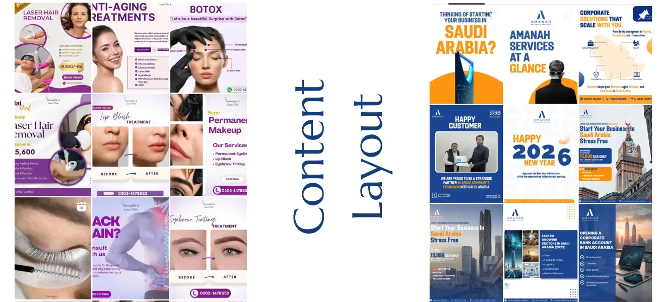 - 10–15 posts/month (Static + carousel + reels)